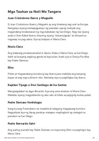 Filipino G9Q4 Tauhan ng Noli Me Tangere Flashcards Flashcards in Tauhan ng Noli Me Tangere Deck 31. Señor Nol Juan - namahala ng mga gawain sa pagpapatayo ng paaralan.