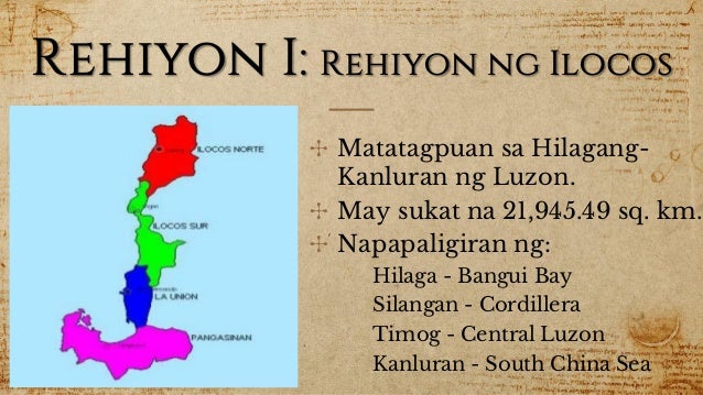 Lungsod ng Laoag Ilocos Norte. Province sa silangan Benguet sa timog-silangan La Union sa timog Dagat Luzon at Look Lingayen sa kanluran. Mga Produkto Sa Bawt Rehiyon ng Pilipinas.