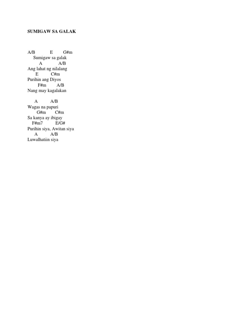 Sumigaw Sa galak. Sumigaw Sa Galak Praise Worship Line Up Tagalog Major Chords Beat ¾ Intro. Create and get 5 IQ.