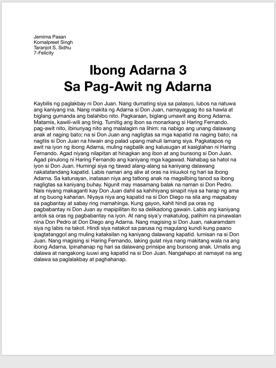January 29 2018 at 218 AM Unknown said. Alam ko naman hindi lahat ng tao ay magaling sa Filipino kaya tutulungan ka namin. ANG BUOD NG IBONG ADARNA Sa isang mapayapang kaharian ng Berbanya may isang hari na ang pangalan ay si Don Fernando ang kanyang asawa ay si Donya.